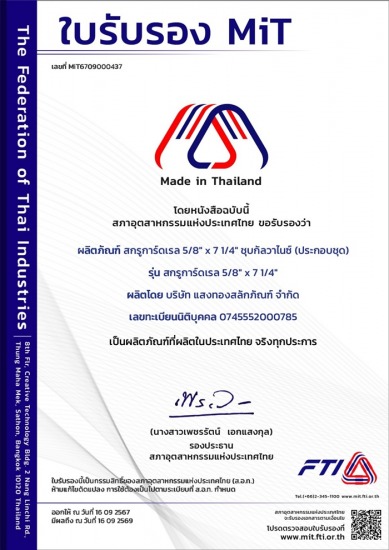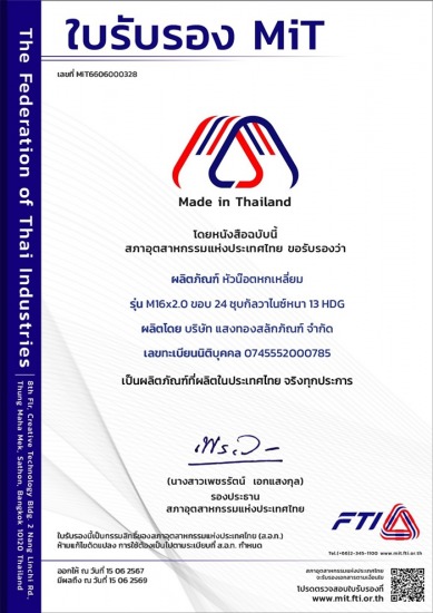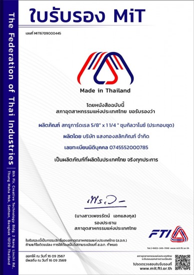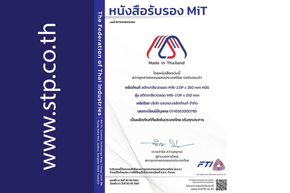 ผลิตสลักภัณฑ์มาตรฐานงานจัดซื้อพัสดุ งานติดตั้งระบบไฟฟ้าของ กฟภ., กฟน.และบริษัทรับเหมาติดตั้งระบบไฟฟ้า เช่น สตัทโบลท์ สลักเกลียวตลอด สลักเกลียวห่วงกลม ต้องการใช้สลักเกลียวหรือสตัดโบลท์สเปคใด ขนาดใดสอบถามได้